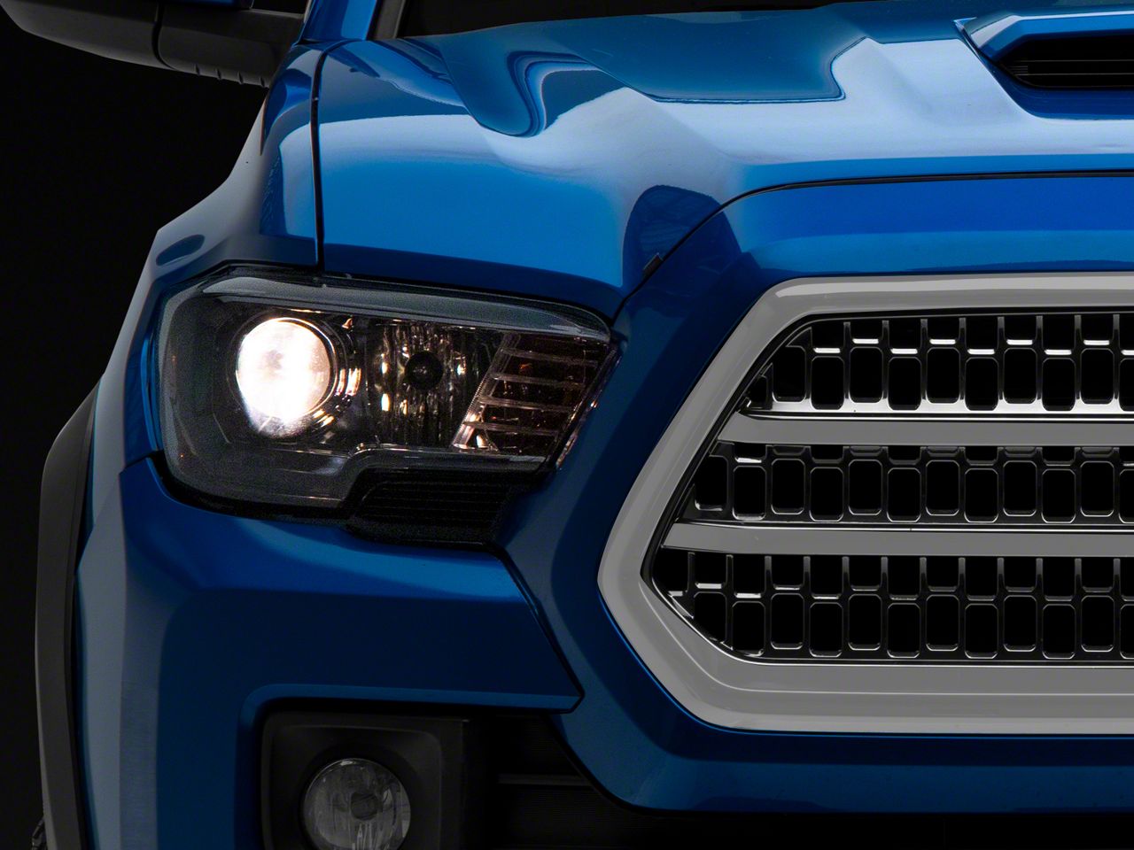 Application. These Smoked Projector Headlights with Amber Corners are specifically designed for all 2016 to 2023 Toyota Tacoma models without Factory LED DRLs.