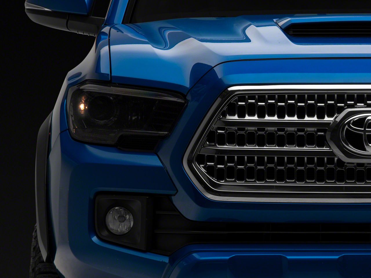 Application. The Projector Headlights with Clear Corners; Chrome Housing; Smoked Lens are designed to fit all 2016-2023 Toyota Tacoma without Factory LED DRL models.