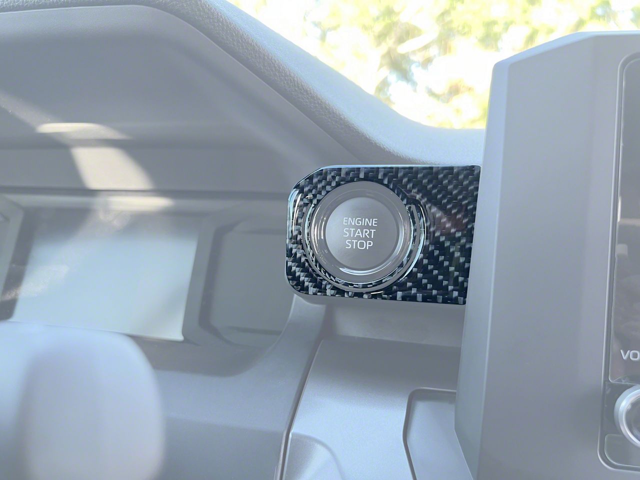 Premium Style Enhancement. The Push-To-Start Button Accent Trim offers a sleek and modern touch to your Toyota Tacoma's interior. Featuring a forged carbon fiber finish, this accent trim not only elevates your vehicle's aesthetics but also provides lasting durability and resistance to wear and tear.