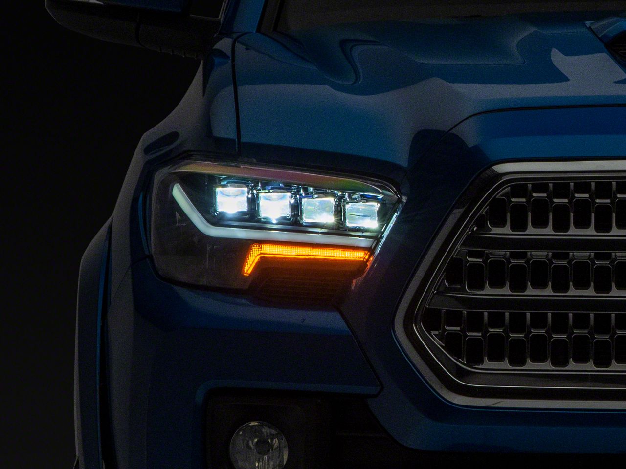 Application. The Quad-Pro LED Projector Headlights; Black Housing; Clear Lens will fit all 2016-2023 Toyota Tacoma models with Factory LED DRLs.
