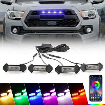 Versatile. The Raptor Style Grille Lights have a feature called RGB that allows you to choose from a wide variety of lighting options. These lights are more advanced than regular static lights. You can change the colors and lighting on your Tacoma to match different occasions, moods, or events. If you're going to a show, going off-road, or just want to make your daily commute more stylish, these lights let you choose the lighting style that fits the situation best.