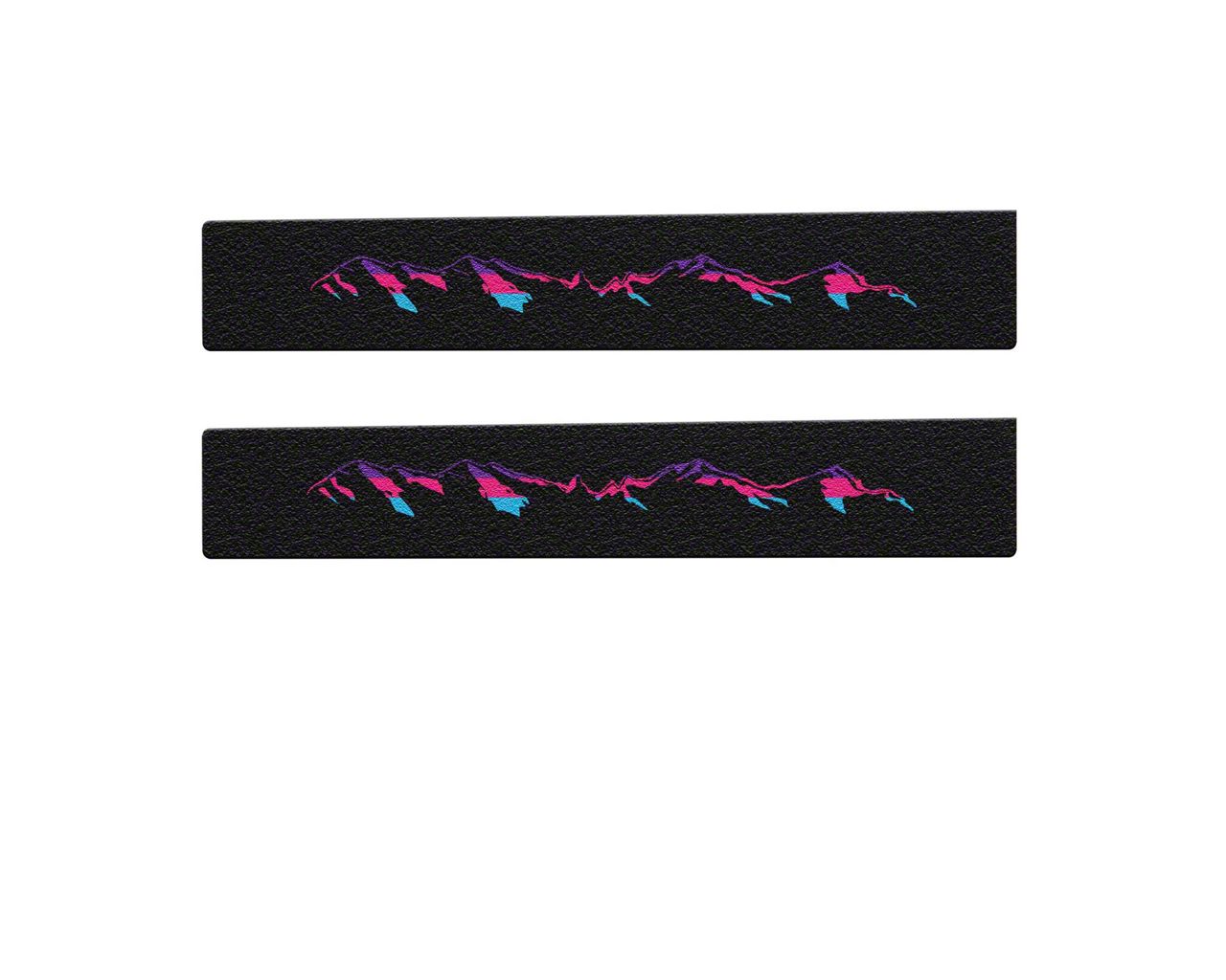 Pretty and Protective. Save your Tacoma's interior from scratches and prevent water from ruining the carpeting with this Rear Door Sill Protection with Mountain Logo; Black with Lady TRI-Color. Not only is it easy to install but it also adds flare and subtle styling to your ride, giving your protection that also looks good.