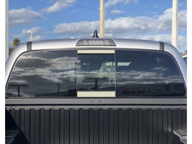 Effortless Visual Upgrade. The rear window accent pieces are placed above and below the sliding space and are sure to be noticed. The quicksand tan color will complement nearly any vehicle color and add the visual finishing touch.