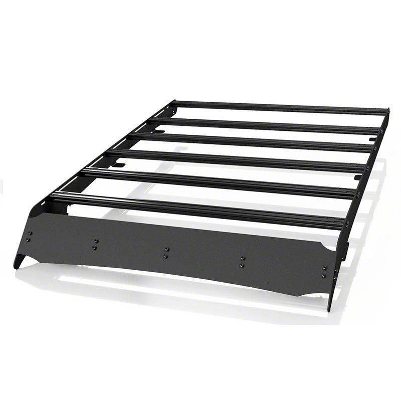 Construction and Appearance. Built with high-tensile aluminum and steel for maximum strength, this roof rack includes five extruded aluminum cross bars. Its durable textured black powder-coat finish provides excellent corrosion resistance and a sleek, aggressive look.