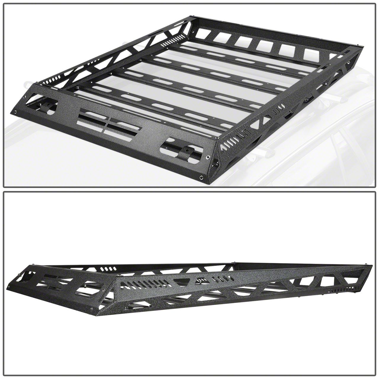 Application. This Roof Top Cargo Basket with Cargo Net features universal fitment and may require adaptation depending on your specific vehicle and roof rack setup.