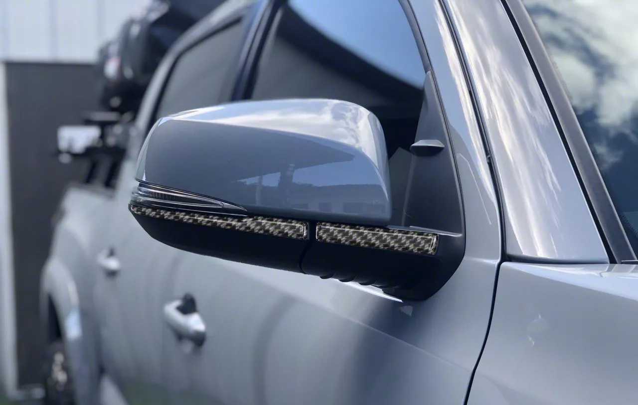 Application. The Real Carbon Fiber Domed Side Mirror Accent Trim fits any 2016-2023 Toyota Tacoma model.