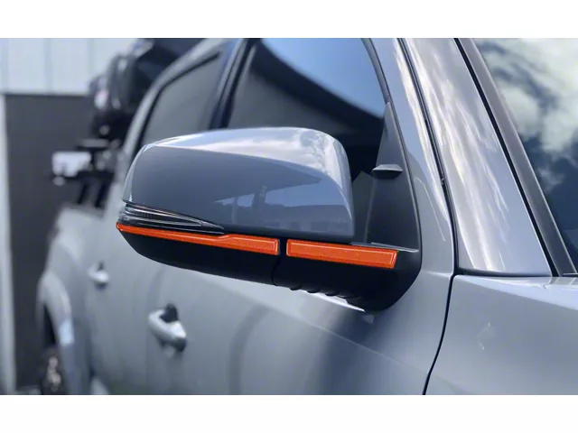 Application. The Side Mirror Accent Trim is compatible with all 2016-2023 Toyota Tacoma models with Mirror Blinkers.