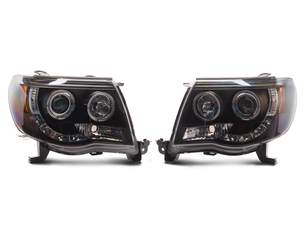 Application. The Signature Series LED Halo Projector Headlights with Black Housing and Clear Lens will fit all 2005 to 2011 Toyota Tacoma models.