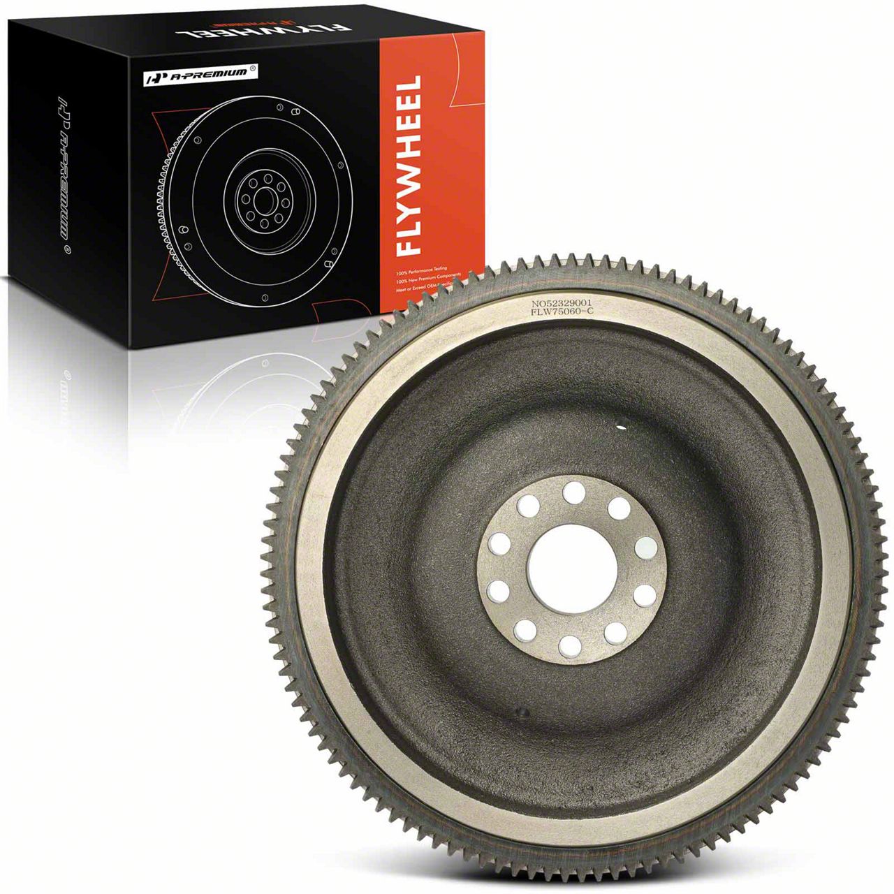 Construction and Appearance. This flywheel is manufactured using high-quality iron materials, featuring a rugged 10-bolt design and 115 teeth for precise function. It has been strictly tested to ensure durability and long-lasting service life.