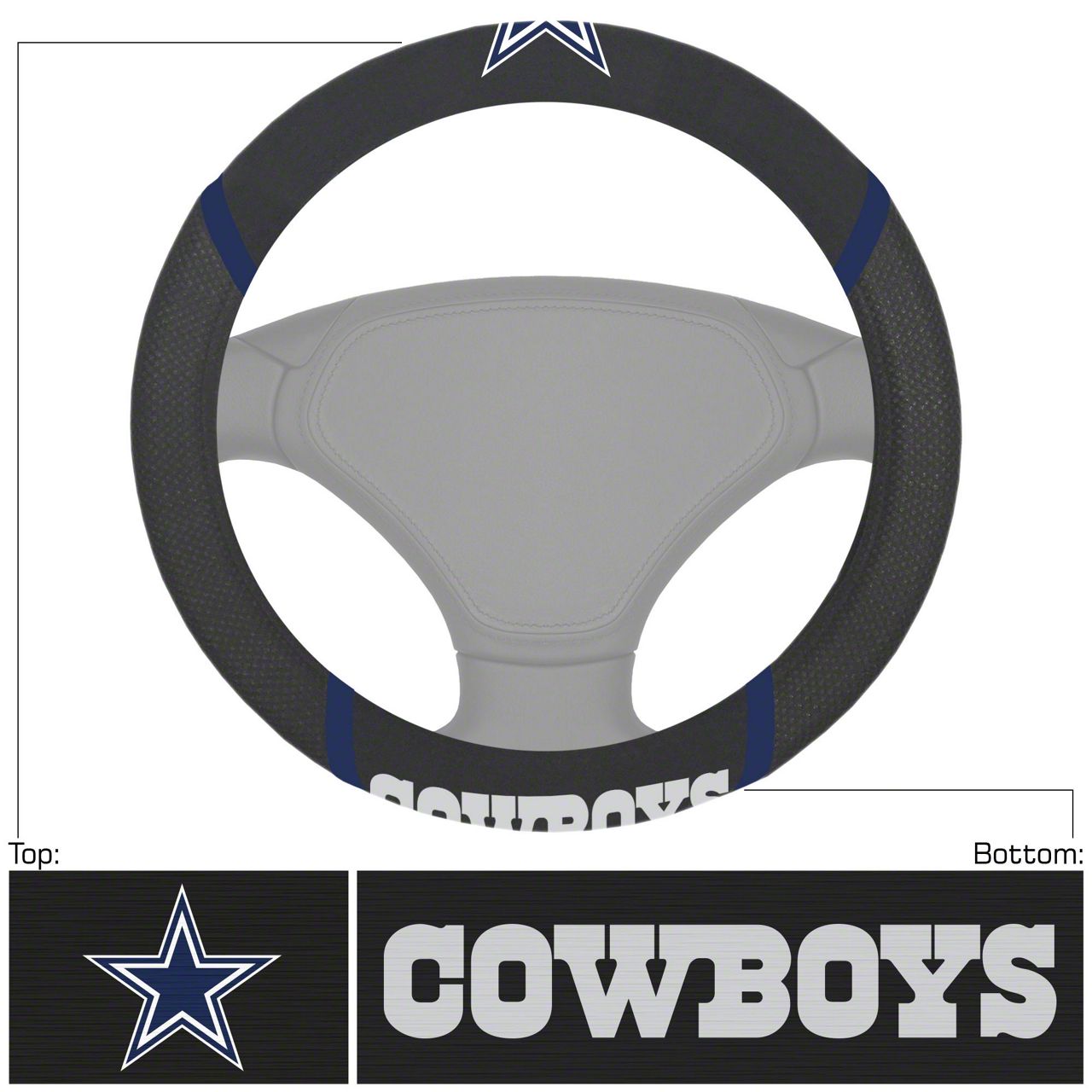 Application. The Steering Wheel Cover with Dallas Cowboys Logo offers universal fitment.