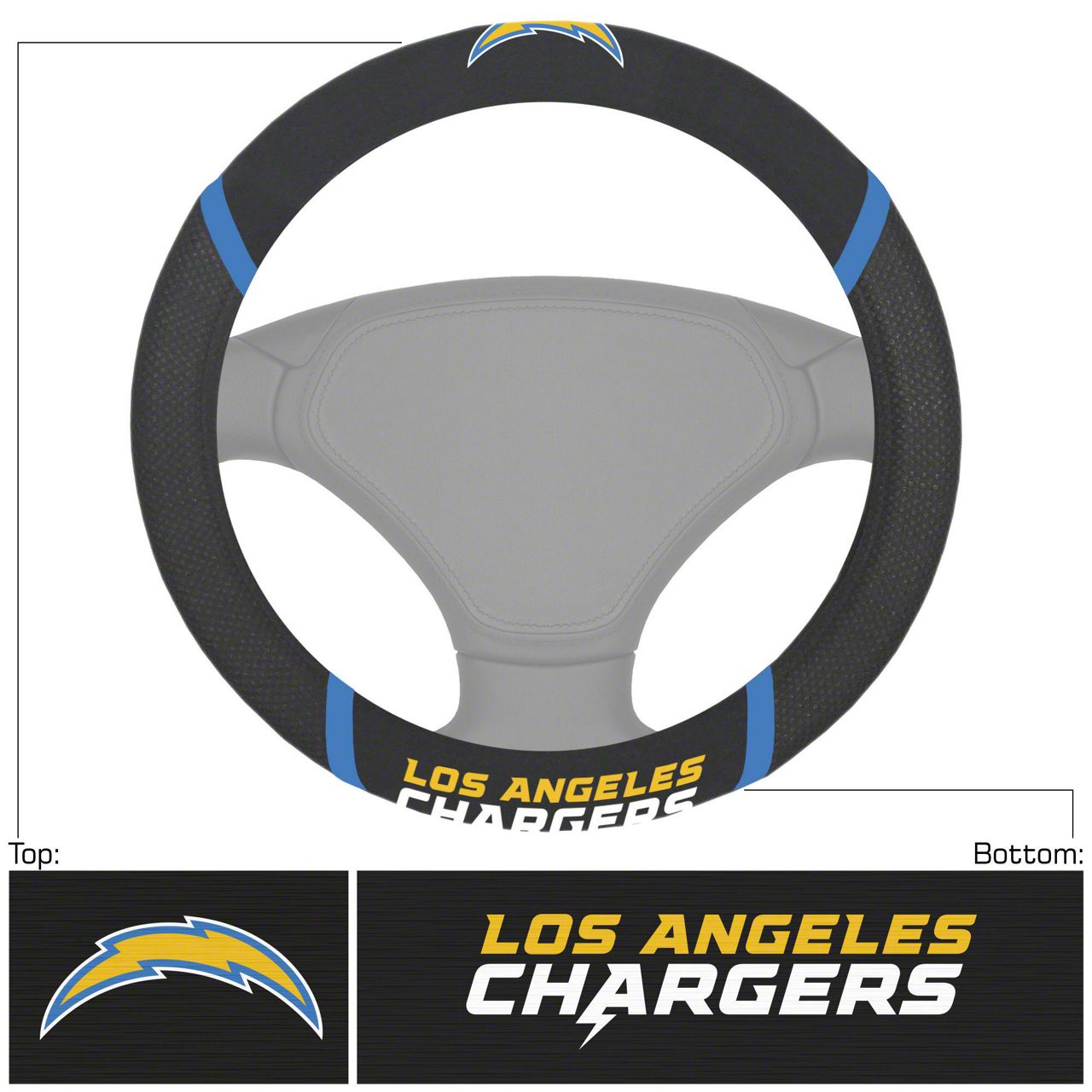 Steering Wheel Cover with Los Angeles Chargers Logo; Black (Universal; Some Adaptation May Be Required)