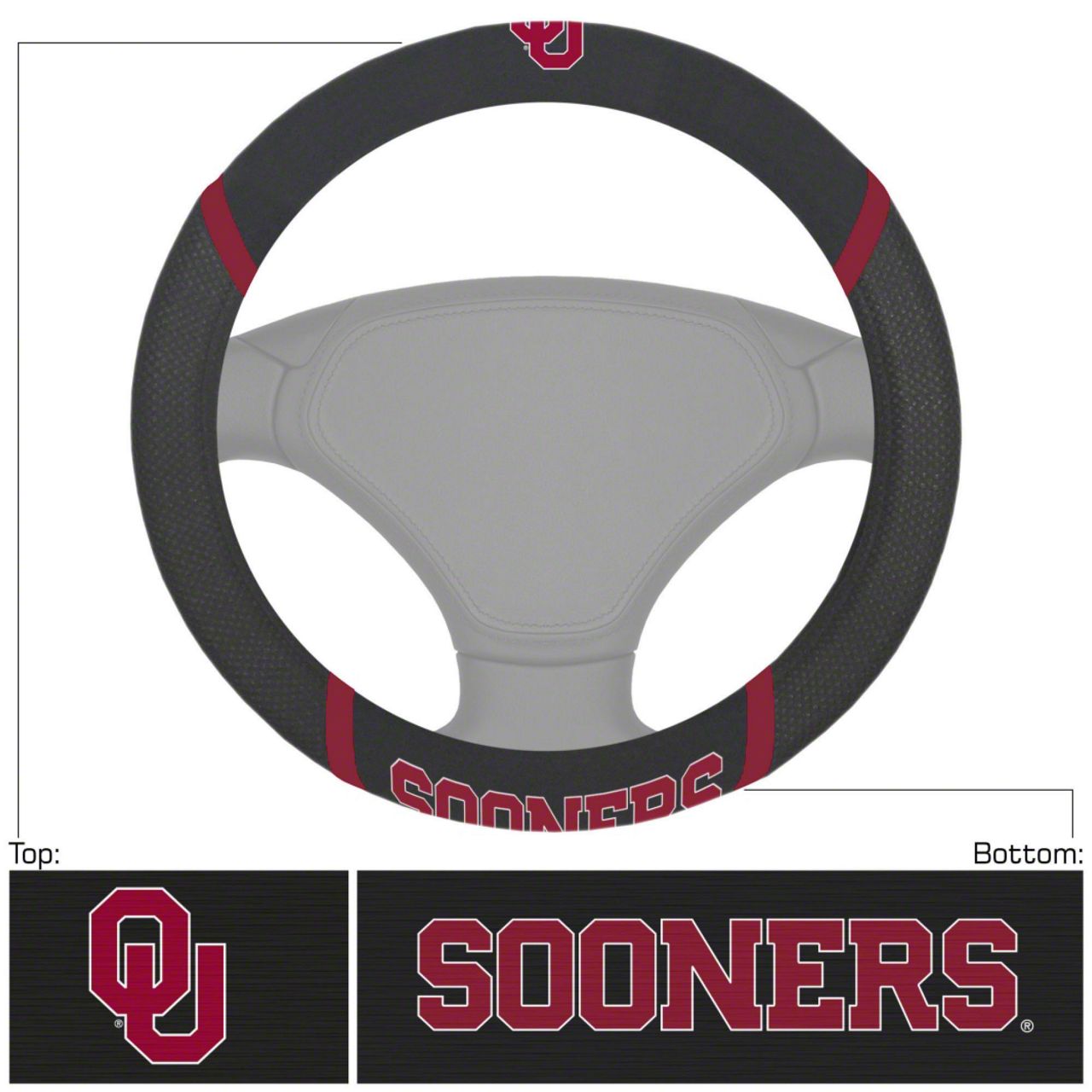 Steering Wheel Cover with University of Oklahoma Logo; Black (Universal; Some Adaptation May Be Required)