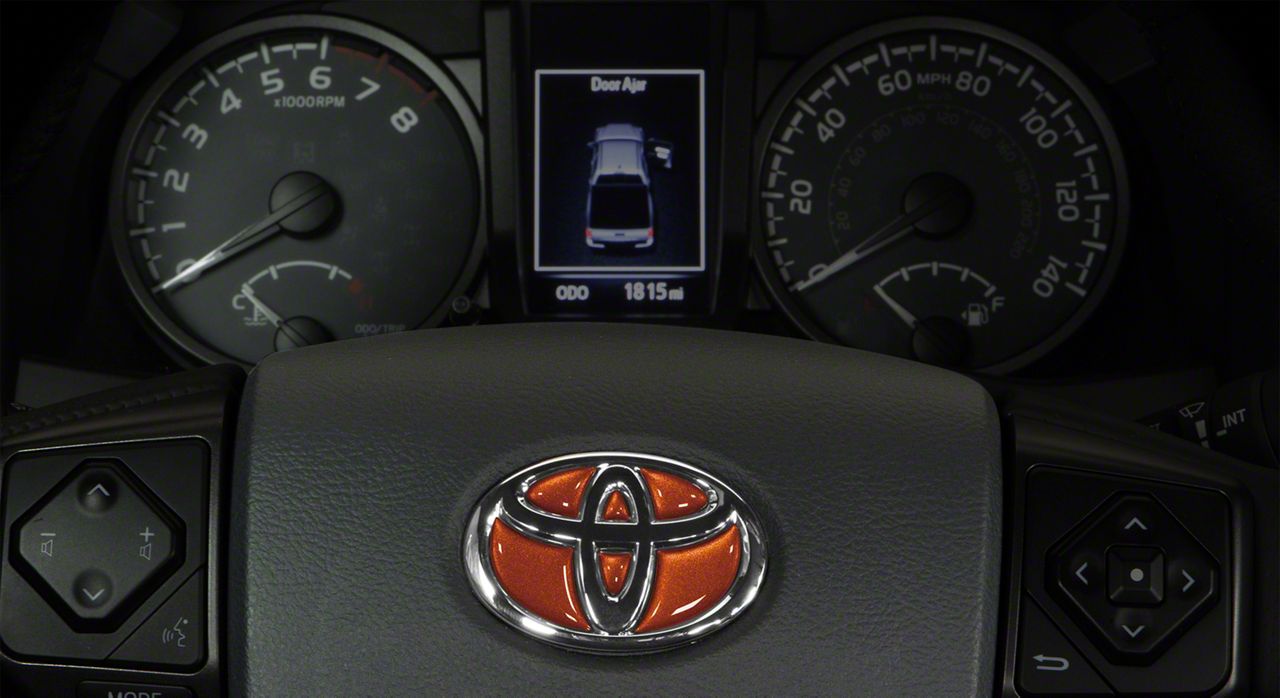 Application. These Steering Wheel Emblem Inserts; Inferno are designed to fit 2016-2023 Toyota Tacoma models.