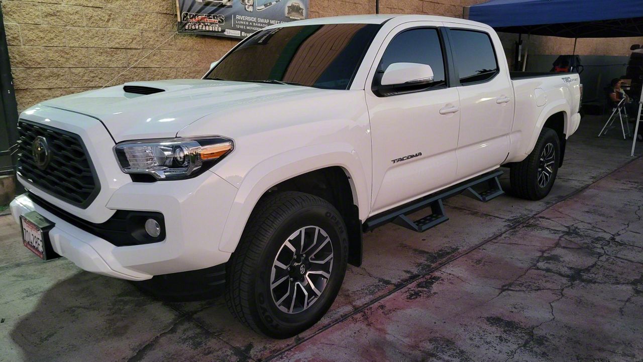 Installation. Putting these STX Drop Side Step Bars on your Tacoma Double Cab takes 2 hours to install.