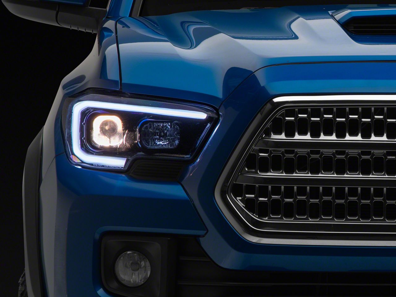 Application. These Switchback LED Bar Projector Headlights; Gloss Black Housing; Smoked Lens are designed to fit 2016-2023 Toyota Tacoma models equipped with Factory Halogen Headlights without the factory LED daytime running lights.