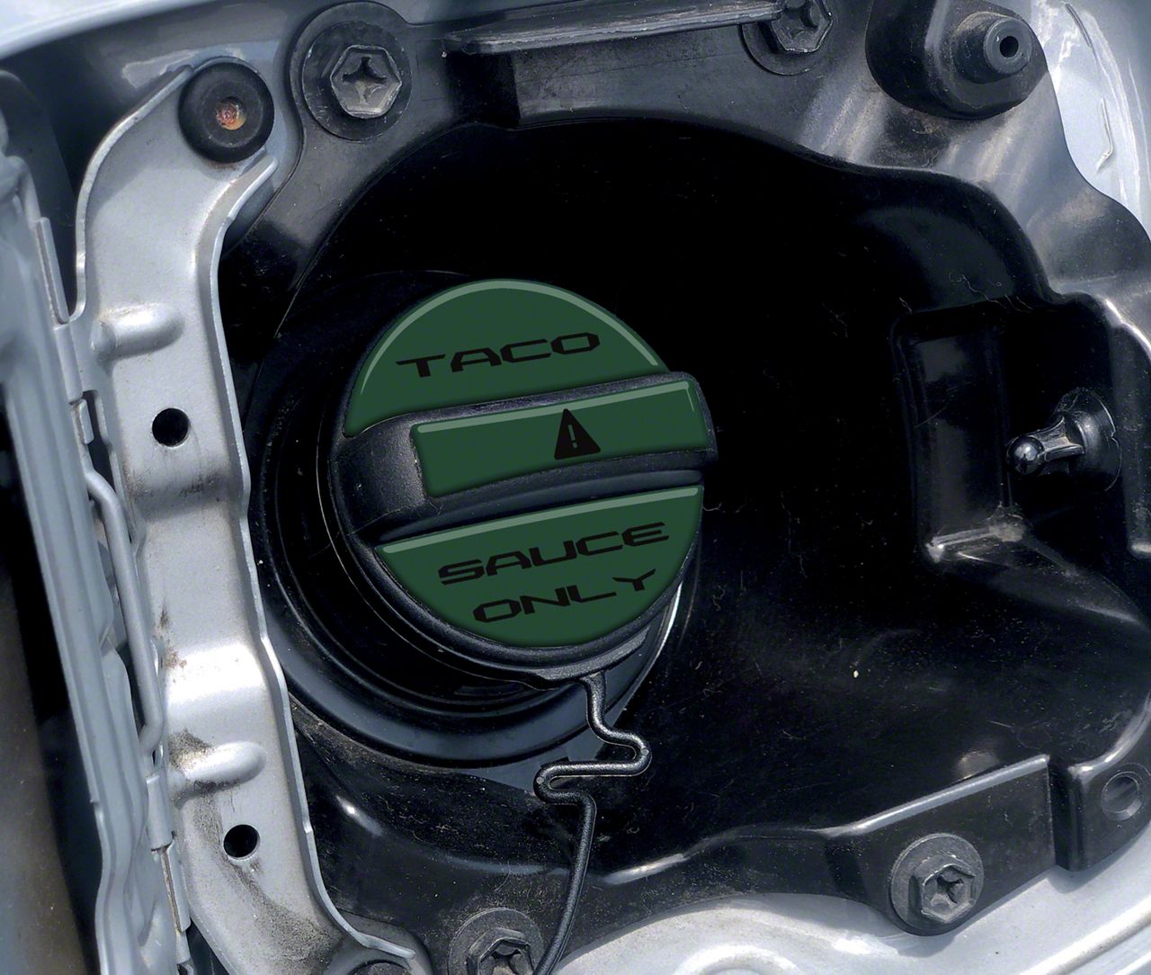 Taco Seasoning. Spruce up under your hood with this Taco Sauce Only Fuel Cap Overlay; Army Green with Black Text. This 3-piece kit will provide you some protection and style on your Tacoma's gas cap lid, a spot long forgotten when it comes to appearance upgrades.