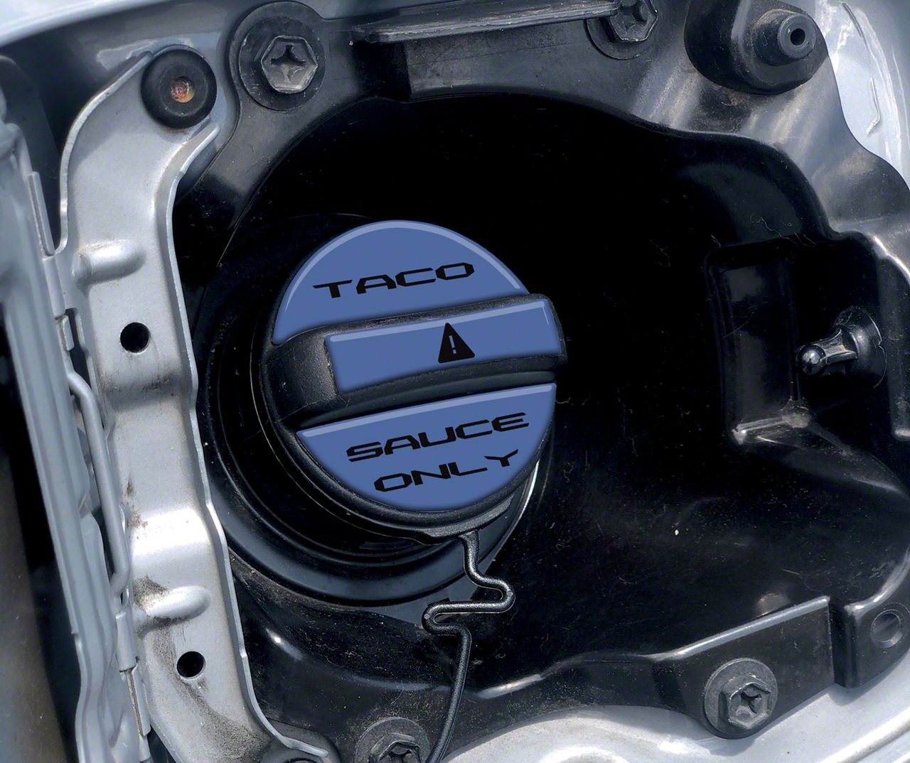 Taco Seasoning. Spruce up under your hood with this Taco Sauce Only Fuel Cap Overlay; Cavalry Blue with Black Text. This 3-piece kit will provide you some protection and style on your Tacoma's gas cap lid, a spot long forgotten when it comes to appearance upgrades.