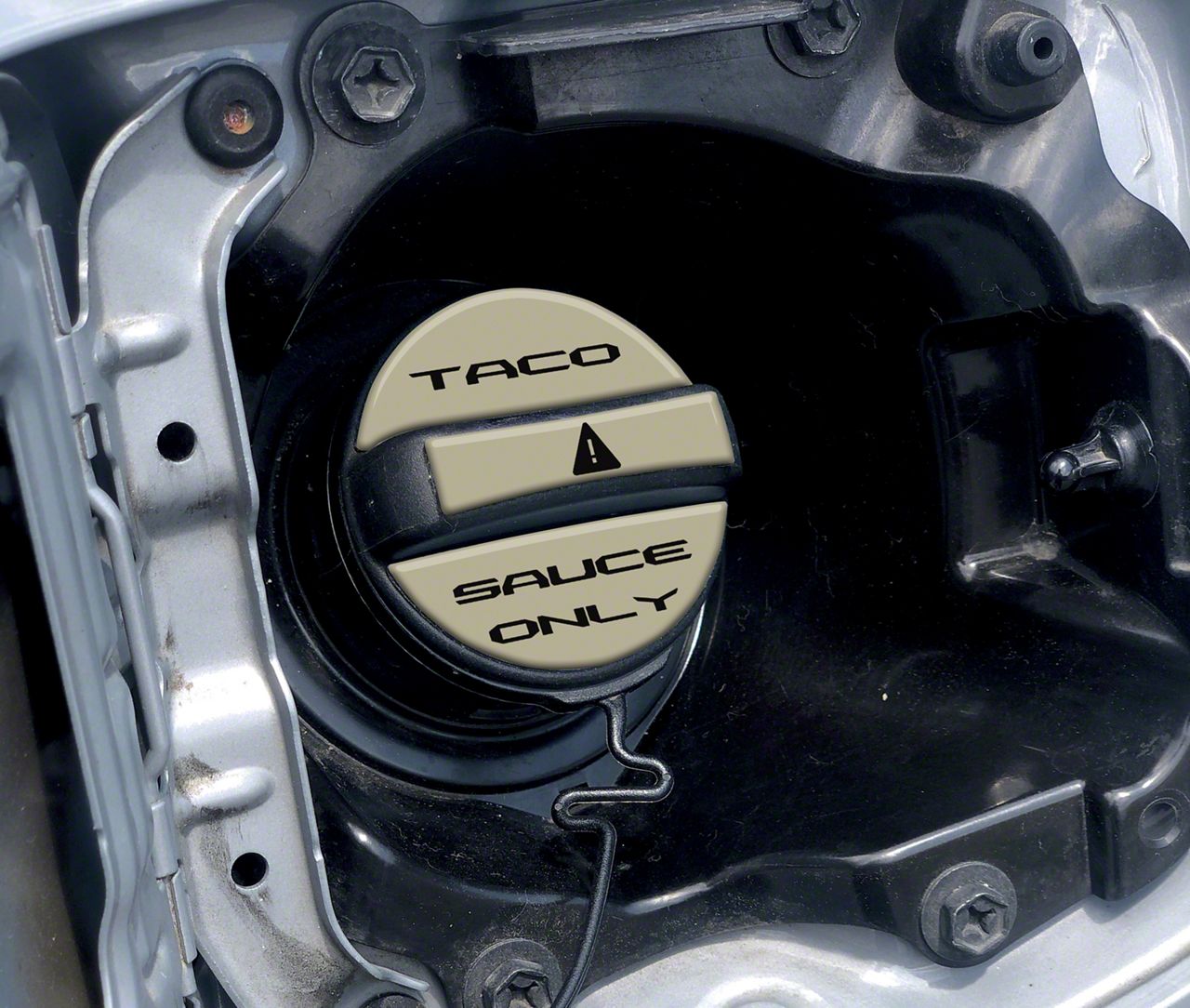 Taco Seasoning. Spruce up under your hood with this Taco Sauce Only Fuel Cap Overlay; Quicksand Tan with Black Text. This 3-piece kit will provide you some protection and style on your Tacoma's gas cap lid, a spot long forgotten when it comes to appearance upgrades.