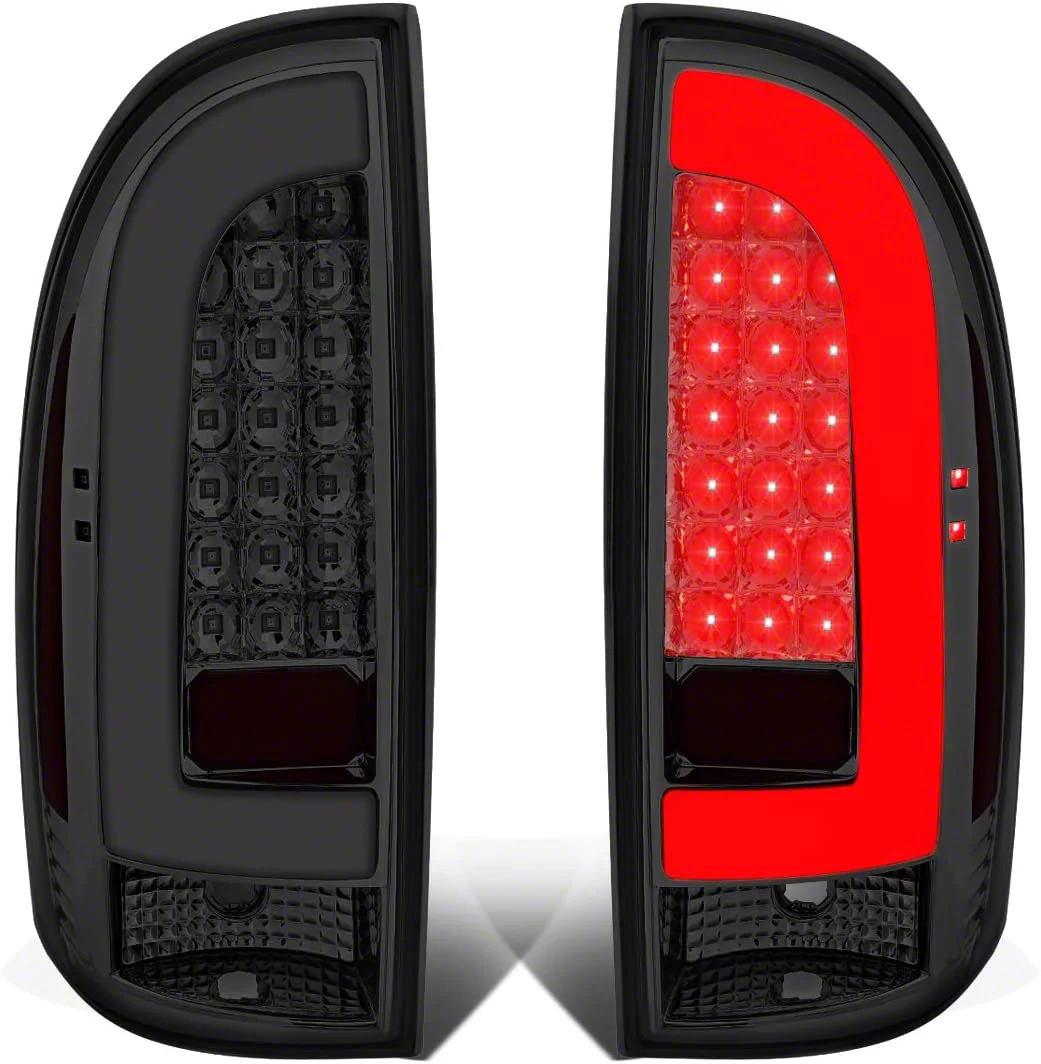 Smoky Bright Taillights. Darken your truck’s coloring and make it stand out with the Tacoma L-Bar LED tail lights. They feature a smoked lens design with an attractive Altezza LED cluster design. The lights output a brilliant amount of light and are simple to install for maximum convenience and visibility. These lights make excellent replacements for the stock lights and fit 2005 to 2015 Toyota Tacoma trucks.