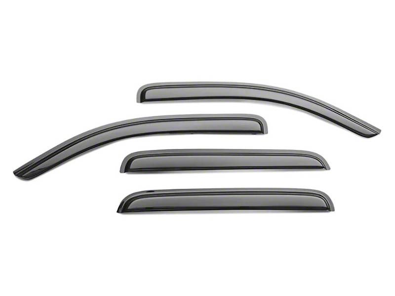 Construction and Appearance. Crafted from durable, shatterproof acrylic, these rain guards are built to endure the rigors of daily driving and extreme weather. The sleek smoke finish provides a modern, streamlined appearance that blends seamlessly with your truck's exterior while maintaining visibility and reducing glare. Their aerodynamic profile not only looks great but also enhances functionality by minimizing wind resistance.