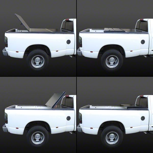 Tri-Fold Cover. A tri-fold design allows drivers to easily access their bed at any time without disassembling this hard top cover.