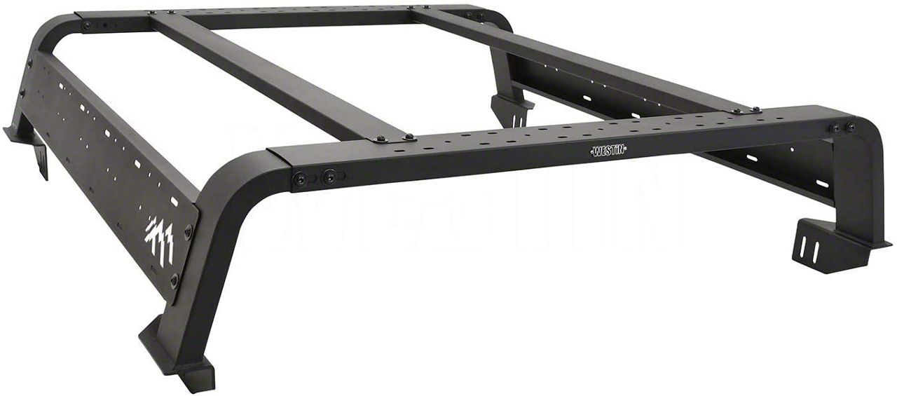 Adjustable Top Support Rails. The bed rack includes modifiable top support rails to accommodate different types of cargo.