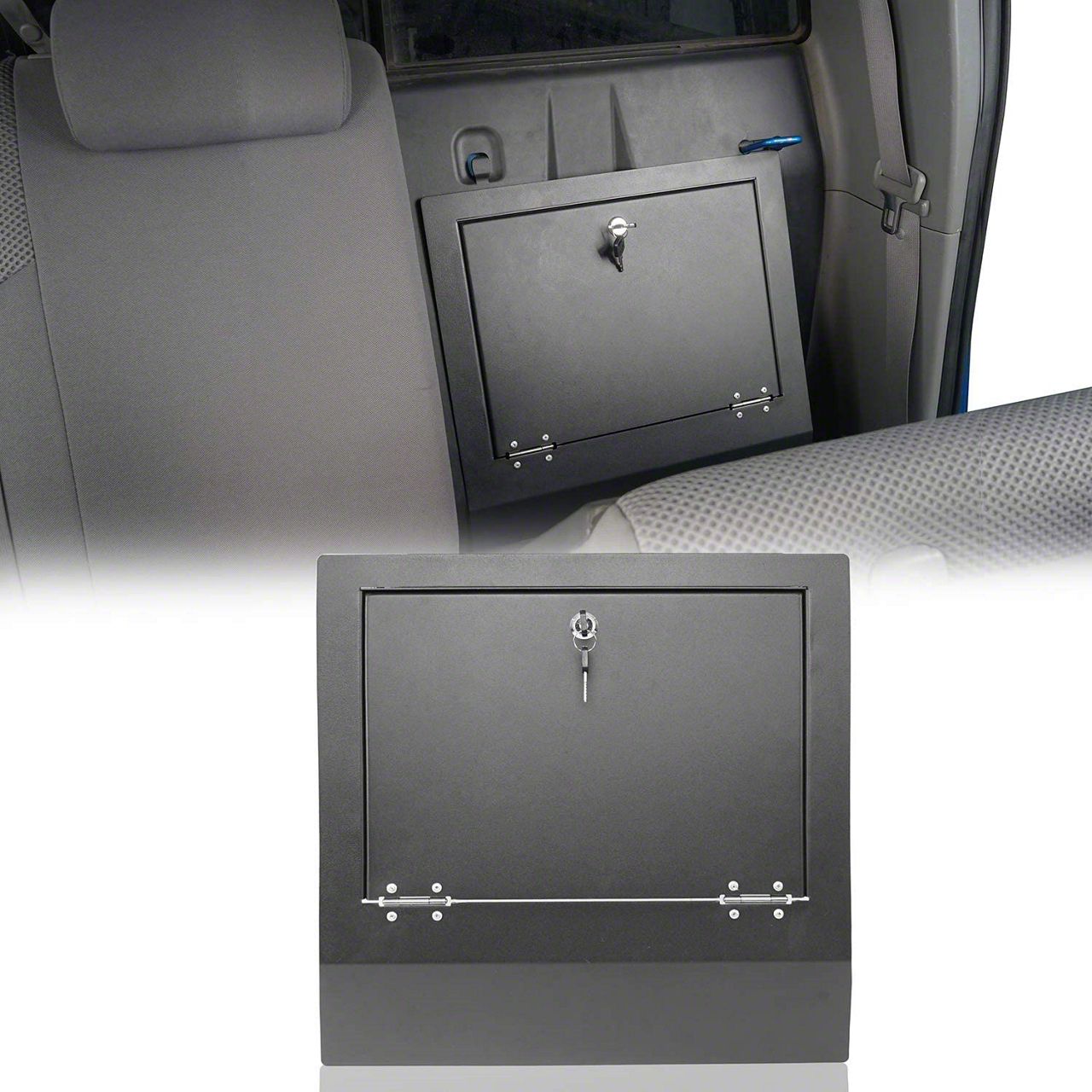 This heavy-duty Tacoma locking security cubby cover covers the existing plastic OEM behind the rear seat cubby. Constructed from 14 gauge and 5/64” thick welded steel, it creates a secure storage area behind the Double Cab's rear seat, which is ideal for securing valuable tools and gear.