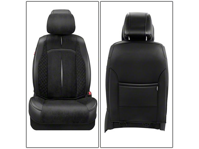 Durable Seat Protection. The Voris Series Front Seat Covers provide superior protection for your vehicle's interior while maintaining comfort and style. Made from premium neoprene material, these covers resist water, UV damage, and everyday wear, making them an excellent choice for drivers who want long-lasting seat coverage. The solid black design offers a sleek, factory-like look that blends seamlessly with most interiors.