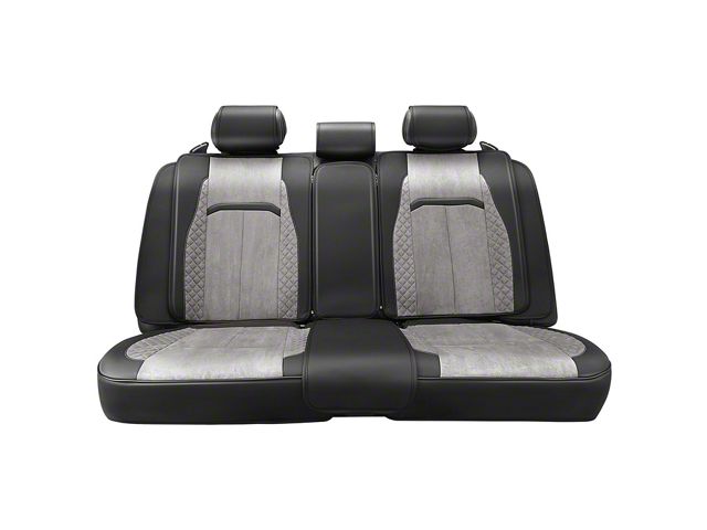Construction and Appearance. Crafted from high-quality leatherette, these covers replicate the luxurious feel and appearance of genuine leather while offering increased durability. The padded microsuede center section adds softness and extra comfort, ensuring longer drives remain pleasant. Finished in an attractive Gray/Black design, the covers create a refined and welcoming atmosphere inside your vehicle.