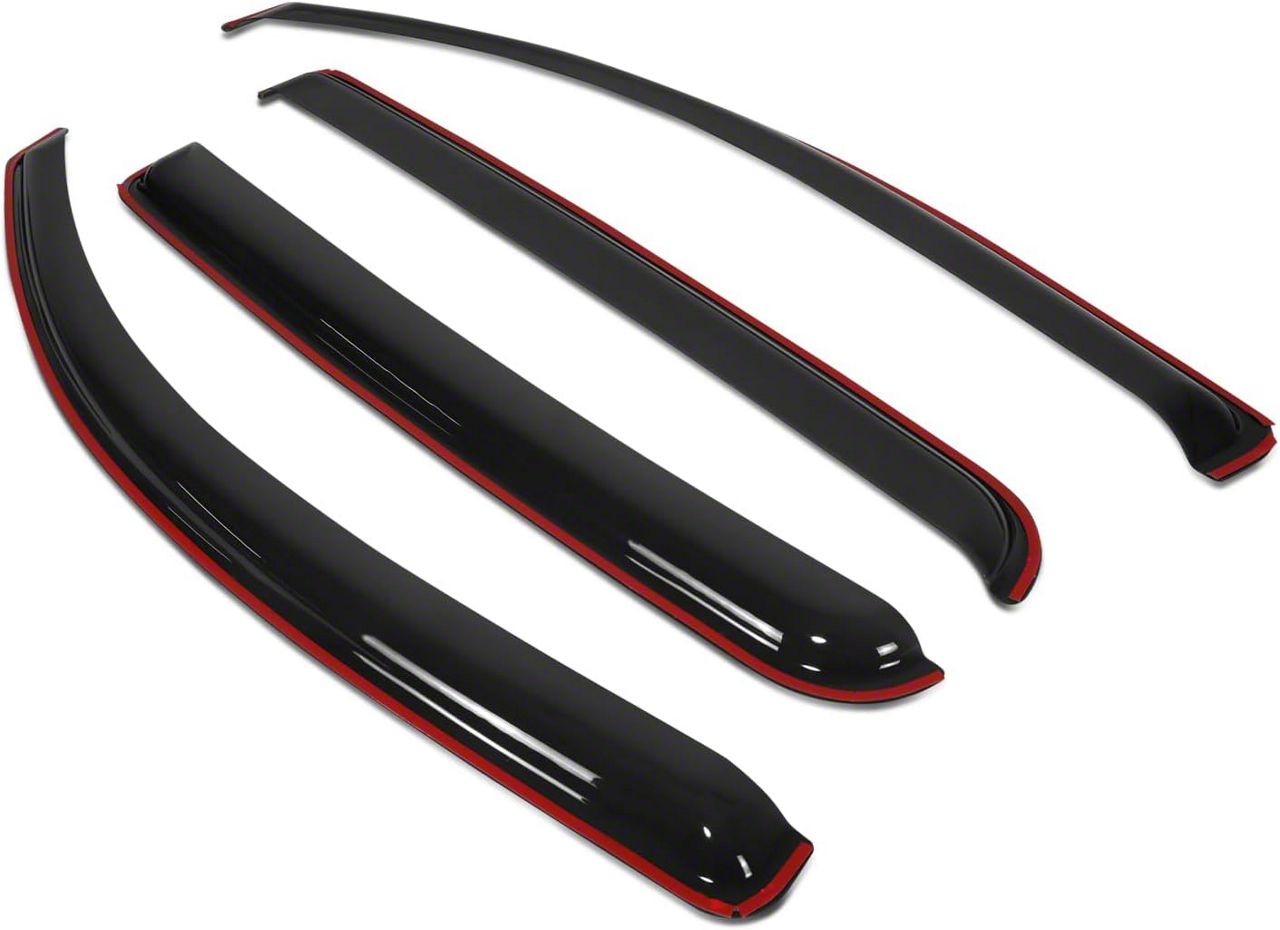 Installation. These visors use a simple peel-and-stick method, making the installation process fast and easy. Each piece is precision-molded for a snug contour and adheres firmly to the door frame using automotive-grade adhesive. No drilling or special tools are necessary, and the secure bond resists wind pressure, car washes, and varying temperatures.