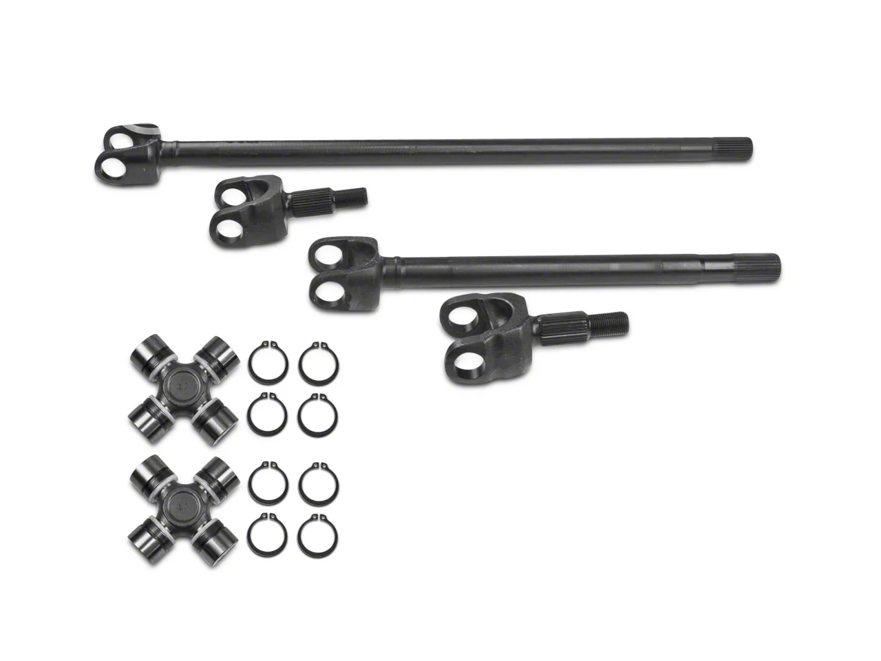 Off-Road Capable. Upgrade those wimpy axles that came stock on your 2007-2018 Jeep Wrangler JK Rubicon with a set of Ten Factory Front Axles. The stock axles will quickly reach their limits when pushing your Jeep off-road, and particularly so when running a larger wheel and tire combo. Designed to fit Rubicon’s equipped with a Dana 44 front differential, these Ten Factory Front Axles are beefed up, direct-replacement versions that are engineered to work with bigger tires and punishing trail obstacles.