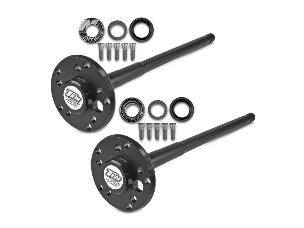 Stronger and Beefier. Upgrade the weak rear factory axles on your Jeep Wrangler YJ or TJ with a set of Ten Factory Dana 44 rear axle kit. The stock axles are fine for light off road use and mild tire upgrades. However, any tire over 35" will become too strenuous for the OEM shafts and will cause them to bend fairly easily when maneuvring the trails. The Ten Factory Rear axle kit is a beefed up version that is able and ready to handle even a massive 39" tire. Retaining the factory 5x4.5 bolt pattern and 30-spline count, these axles mesh perfectly with the Dana 44 differential, no changes are required.