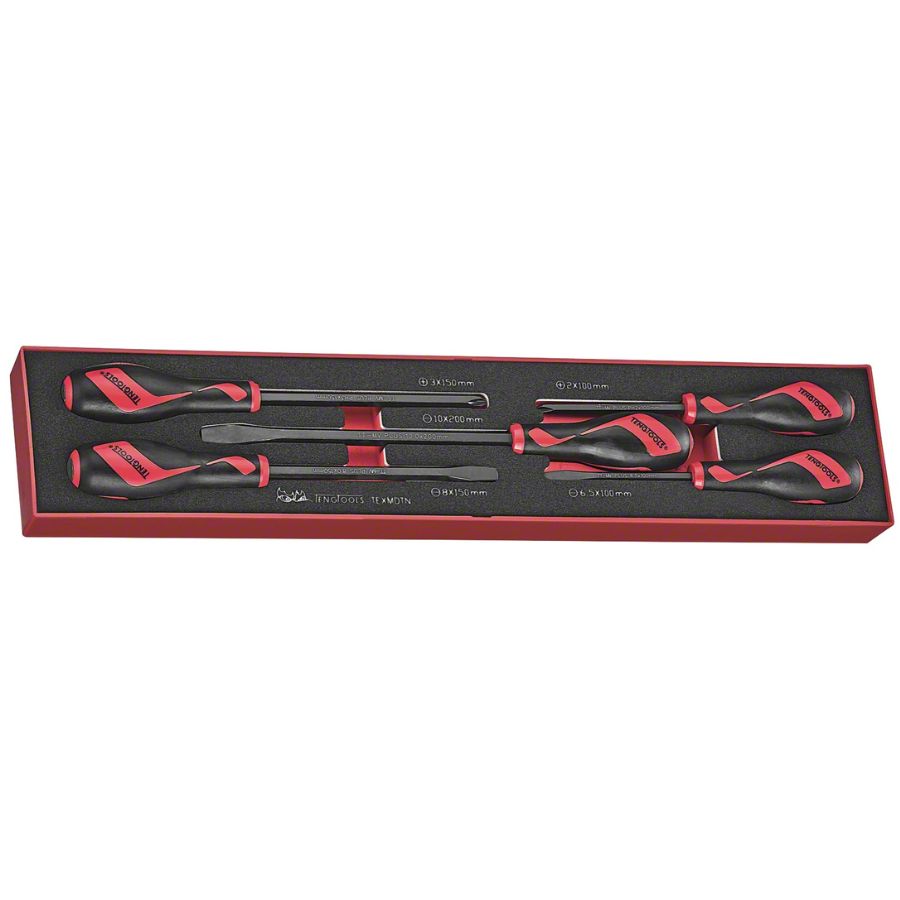 Teng Tools Power Thru Screwdrive Set in Foam Tool Tray; 5-Piece