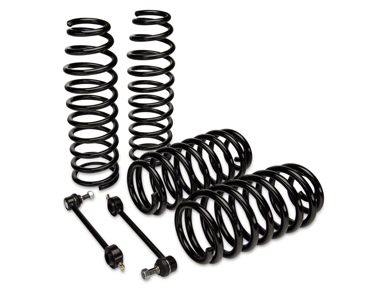 Dimensions. Teraflex's leveling kit accommodates extra weight added from winches, bumpers, or other aftermarket add-ons. This leveling kit includes a front springs, rear springs, and longer front sway bar links.