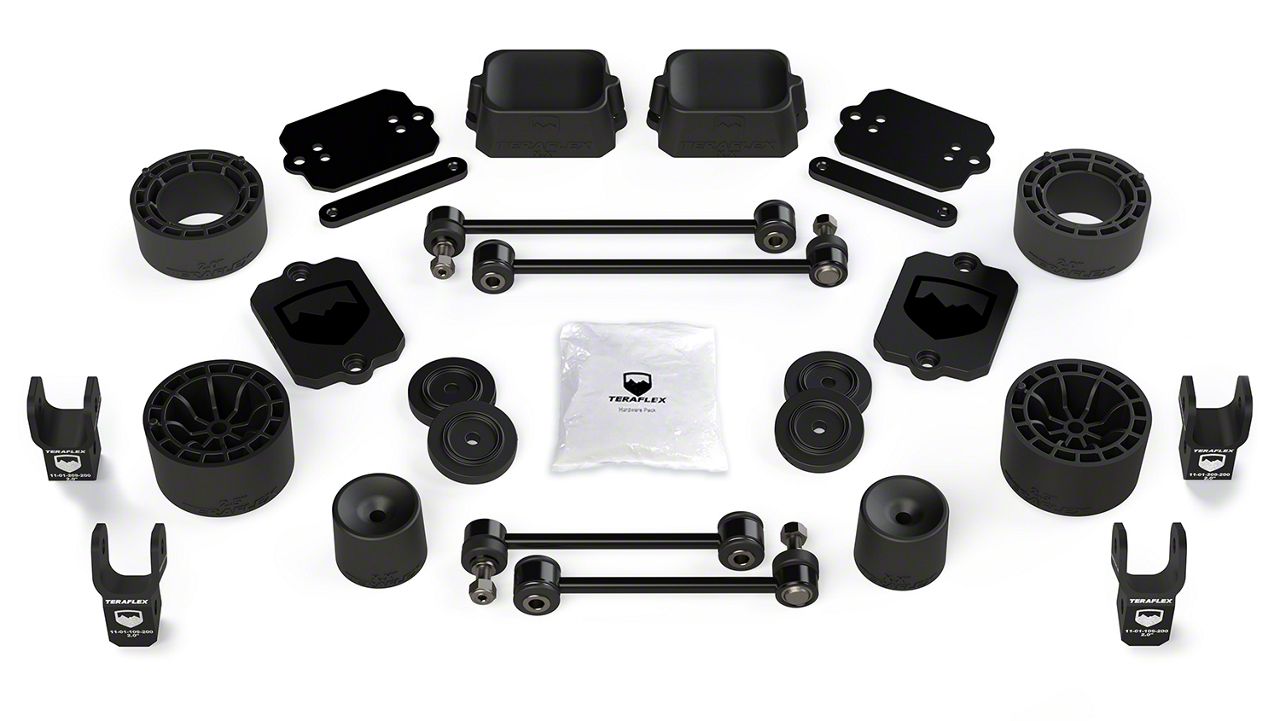 Application. The TeraFlex 2.50-Inch Performance Spacer Lift Kit with Shock Extensions is ideal for all 2018-2026 2-Door Jeep Wrangler JLs, excluding Rubicon models.