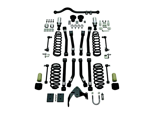 Adjustable Suspension Lift Kit. This suspension lift kit features flexarms that are engineered to allow tuning of the pinion and caster angles. It also includes maintenance-free factory-style bushings to provide excellent vibration damping and ride quality. Meanwhile, the SpeedBump bump stops provide progressive compression during high-speed suspension movement. The heavy-duty adjustable front track bar and rear track bar bracket eliminate side-to-side movement.