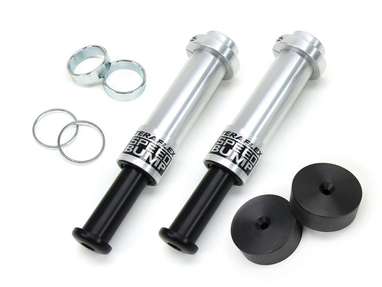 Superior Protection Against Shock Forces. Especially if you run a lift kit on your Wrangler, hitting the trails can result in some truly jarring forces impacting your rig when the suspension finally bottoms out. The 3–3.5” Lift Front Prerunner SpeedBump Bump Stop Kit from TeraFlex gives you the ultimate way to progressively handle those severe impacts. Your back and your front axle will thank you!