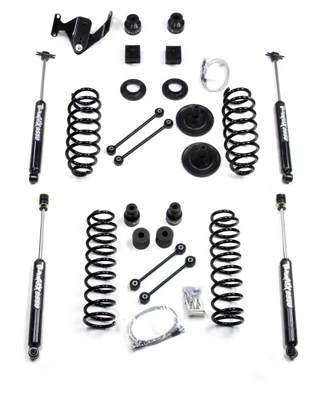 What's in the Kit.The TeraFlex 3-inch Suspension Lift Kit includes lift springs, a rear track bar bracket, rear sway bar links, front sway bar disconnects, bump stops, and the necessary hardware required for installation.