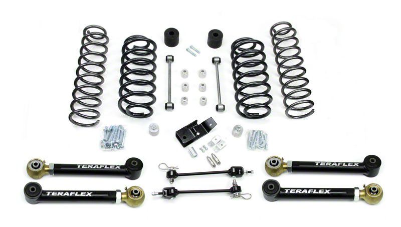 Lift Construction. Teraflex includes springs, rear sway bar links, rear track bar bracket, bump stops, and all hardware needed to install this kit and provide your Jeep with 3 more inches of clearance. This kit features 4 adjustable Monster lower FlexArms, giving you the freedom to customize your suspension to your exact needs and alignment can be done through the FlexArms themselves.