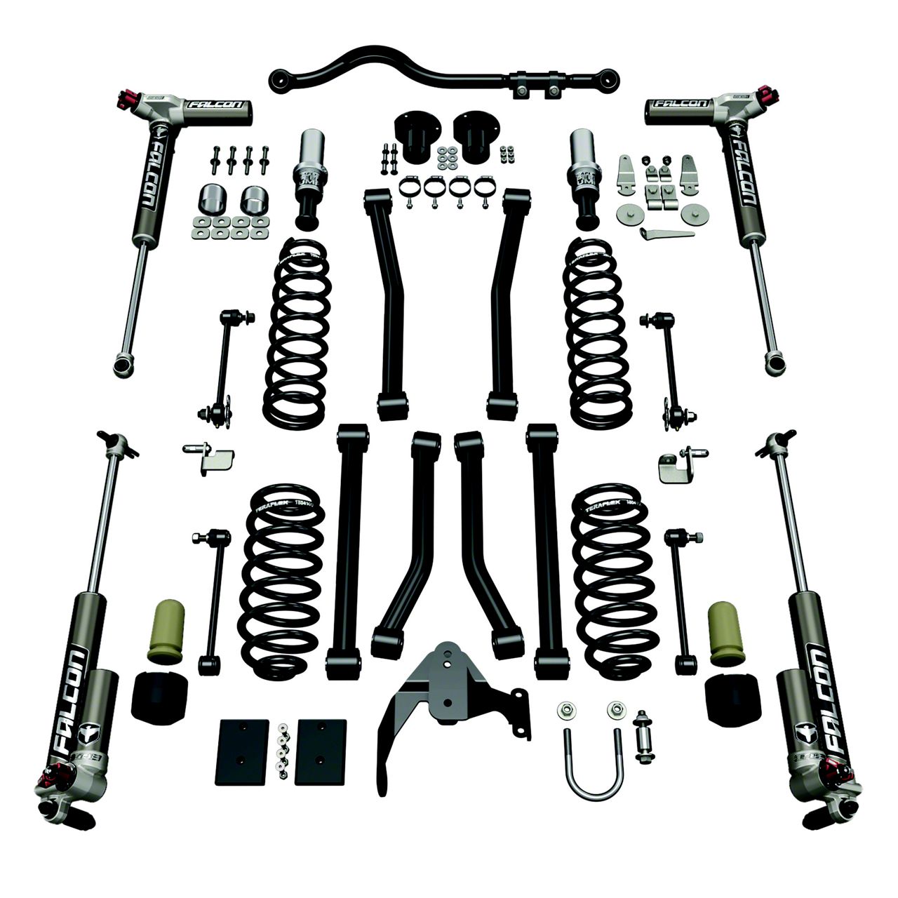 True Street and Trail Performance Upgrade. Some street/trail suspension lift kits make your Jeep handle off-road trails really well, but at the expense of total driving comfort when on city streets. Not the TeraFlex 3 in. Sport S/T3 Suspension Lift Kit w/ 3.3 Falcon Shocks. The TeraFlex 3 in. Sport S/T3 Suspension Lift Kit features components that give you excellent ground clearance for those off-road trails without sacrificing highway driving stability and comfort. With the TeraFlex 3 in. Sport S/T3 Suspension Lift Kit, you can go from an intense off-road trail to picking up the groceries without missing a beat.