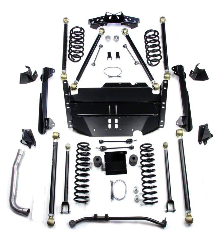 High-Clearance Performance Lift. The Teraflex 4-Inch Pro LCG Long Arm Suspension Lift Kit is a premium suspension system engineered to deliver superior off-road articulation and enhanced on-road handling for your Jeep Wrangler TJ. Featuring a full set of adjustable long control arms and rear 4-link suspension geometry, this kit provides unmatched control, stability, and tunability in both rugged terrain and daily driving scenarios. It's a complete solution for enthusiasts seeking maximum clearance, performance, and adjustability.