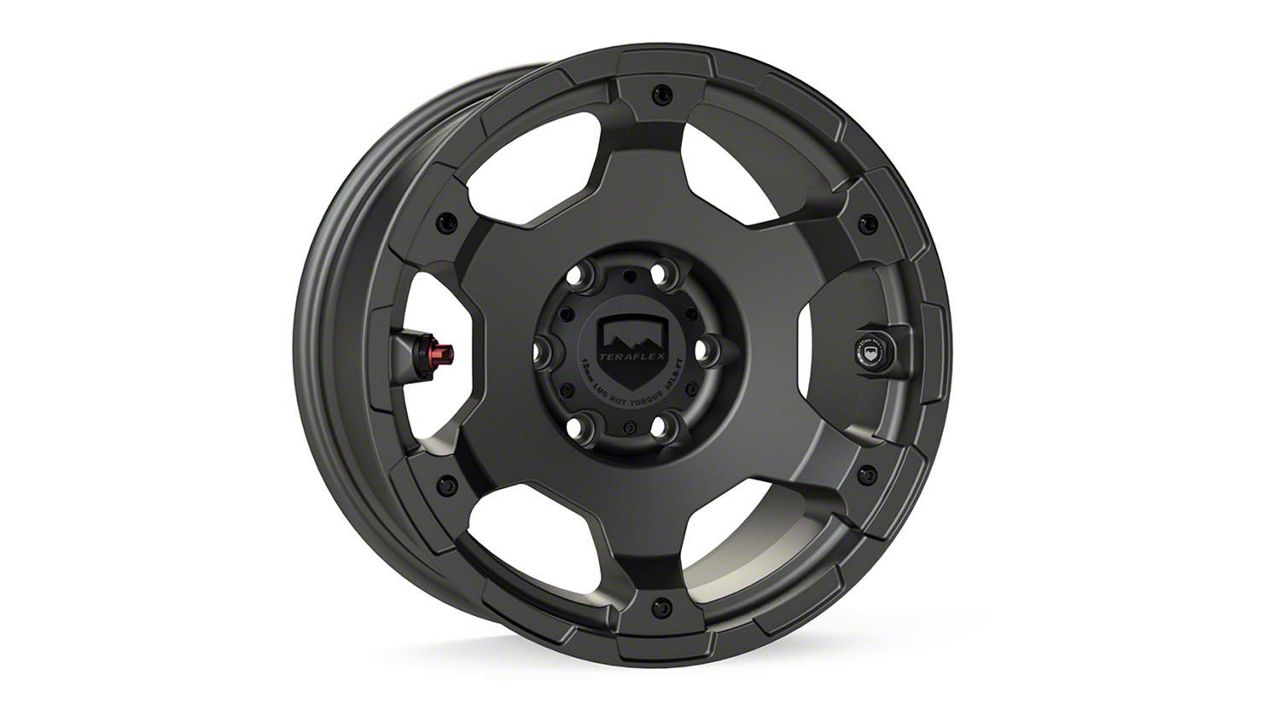 Application. This Teraflex Nomad Off-Road Base Titanium Gray 6-Lug Wheel; 17x8.5; 0mm Offset with a backspace of 4.75 Inch, 120.7mm and bolt pattern of 6 x 139.7mm (6 x 5.5-Inch) is meticulously engineered to enhance alignment and driving stability. It is designed to fit 2021-2026 Bronco, Excluding Raptor models. Sold individually.