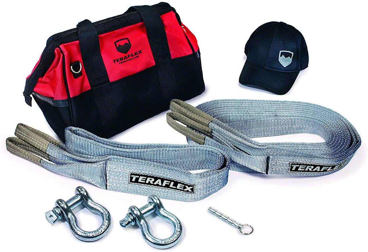 All-In-One Kit. Teraflex Trail Recovery Kit comes with everything needed to ensure a hassle-free recovery mission. It comes with a spacious and heavy duty storage bag that has all the tools that you will require in case you get stuck while on the trail. Teraflex provides a large storage bag that can conveniently accommodate main components of the Teraflex trail recovery kit including the tree strap and the tow strap.