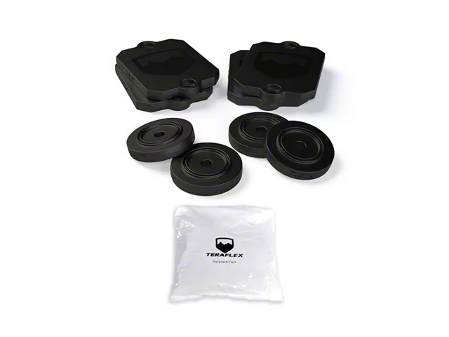 Improved Performance. Give your 2018-2026 Jeep Wrangler JL’s stock bump stops a performance boost with this Teraflex Bump Stop Strike Pad Shim Kit. This kit effectively extends the reach of your factory bump stops for better energy absorption during suspension movement and hard compressions ensuring a more stable and comfortable drive.