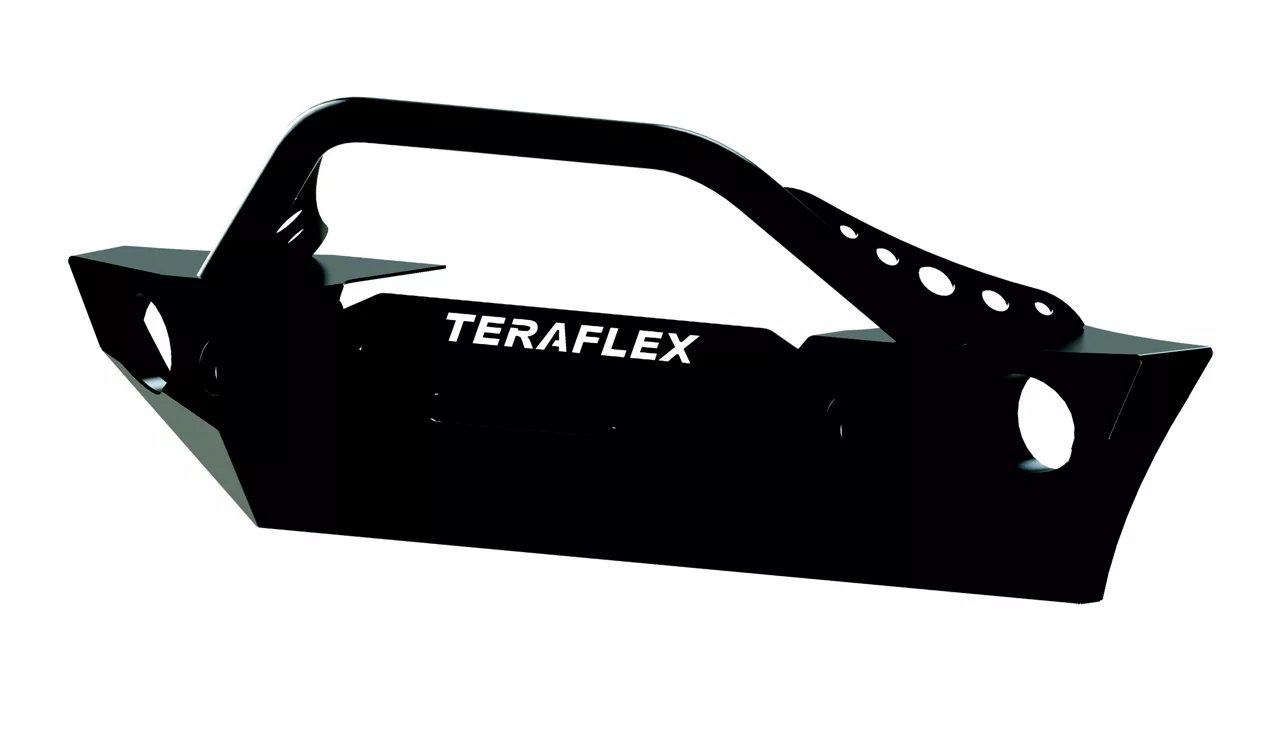 Steel Construction. TeraFlex crafts this Aftermarket Bumper from sturdy steel and coats it with a powder coat finish for maximum durability, as well as preventing corrosion. The versatile bumper features an integrated winch mount fits all major winches with a regular offset bolt pattern and a 1.75 in. mandrel bent hoop.