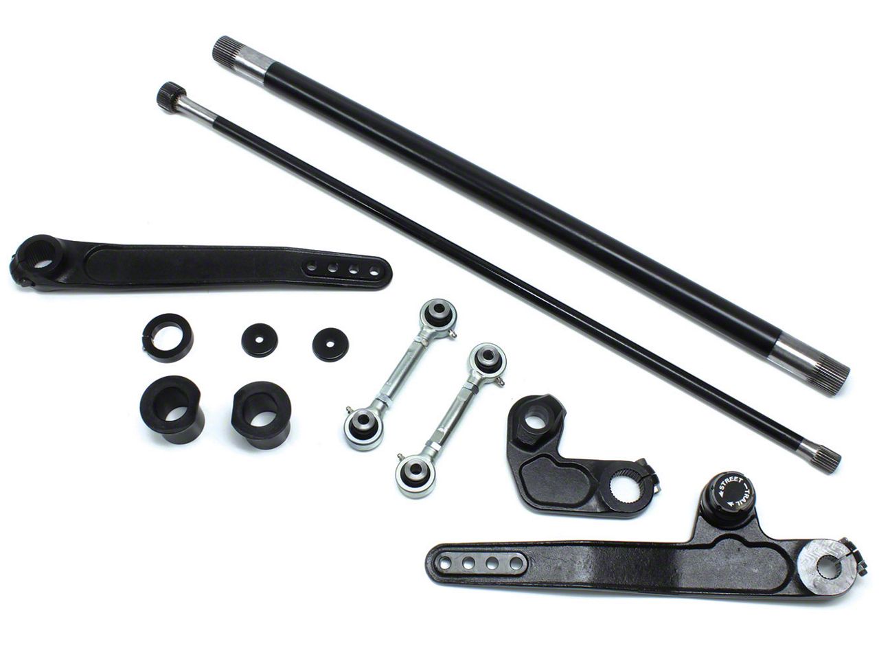 Includes Two Torsion Bars for Driving. The Teraflex Front Dual Rate S/T Sway Bar Kit for 0-3 Inch Lift is a kit that has two torsion bars, which allow you to easily switch between off-roading and highway driving. Additionally, the front sway bar system has an advanced and hi-tech design due to its integrated torsion bars and easy engagement knob. The product is sold as individual kits.