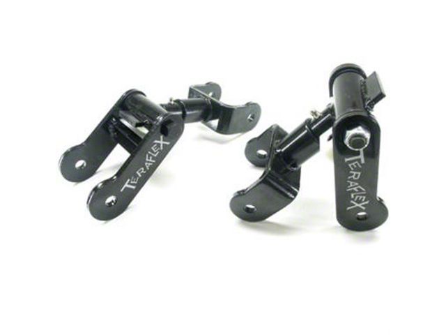 Dimensions. Teraflex offers these 2.5 inch front revolver shackles to modify your Jeep's ride height. With more height means more ground clearance and the ability to mount larger diameter tires. These longer shackles will raise your rig the correct way.