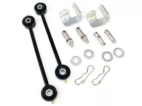 OEM Quality Materials. These Teraflex Front Swaybar Disconnects are made with highly durable materials. The upper sway bar link end has an OEM quality narrow shoulder ball and socket and zero maintenance. The lower swaybar link end has a large polyurethane ball and pin for quick sway bar removal.