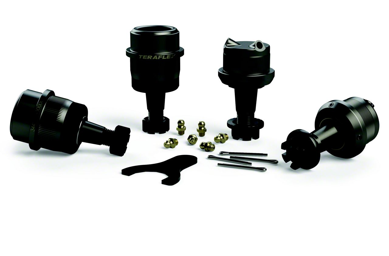 Reliable Performance. This set of 4 Teraflex HD Dana 44/30 Upper and Lower Ball Joint with Knurl is designed to handle increased loads caused by oversized tires and offset wheels.