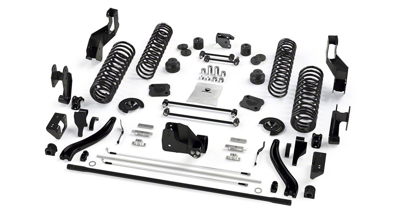 Construction and Appearance. Featuring progressive-rate coil springs, this lift kit ensures a smooth and controlled ride while adapting to changing terrain. The extended-travel design enhances articulation and suspension flex, optimizing handling without compromising factory-like stability. Precision-engineered components maintain proper suspension geometry for long-term durability and performance.